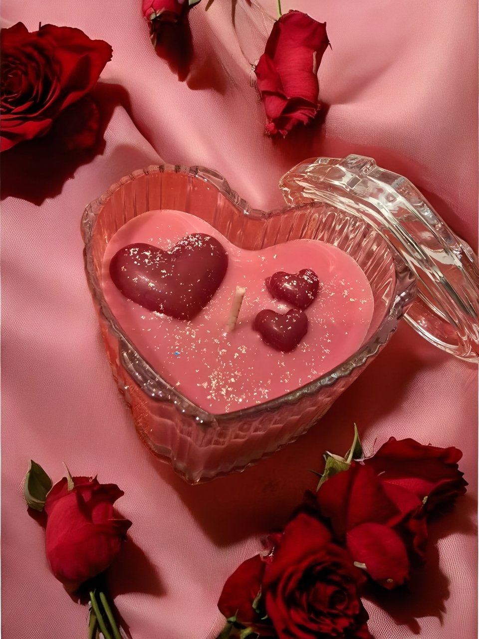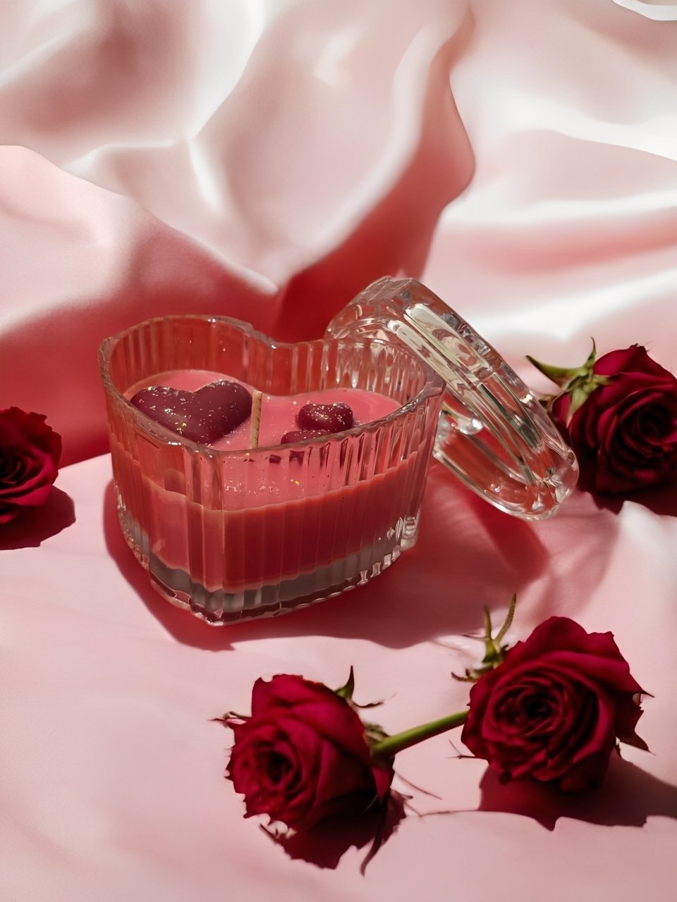 La Bougie Cœur Exotique en fait partie. Son contenant en verre délicatement façonné en forme de cœur, sa cire rose douce et lumineuse, ses petits cœurs décoratifs et ses reflets scintillants créent instantanément une atmosphère chaleureuse et romantique.