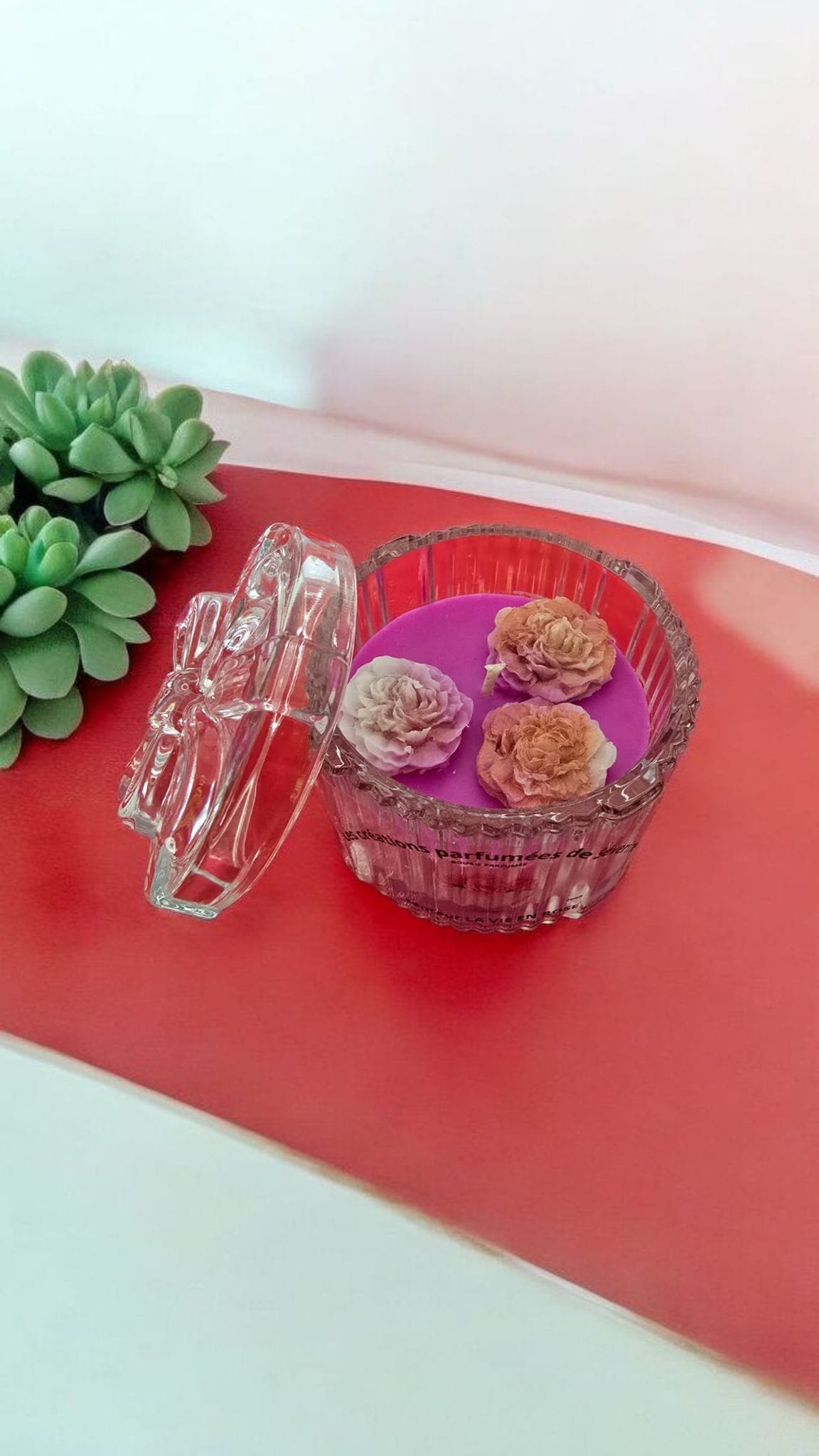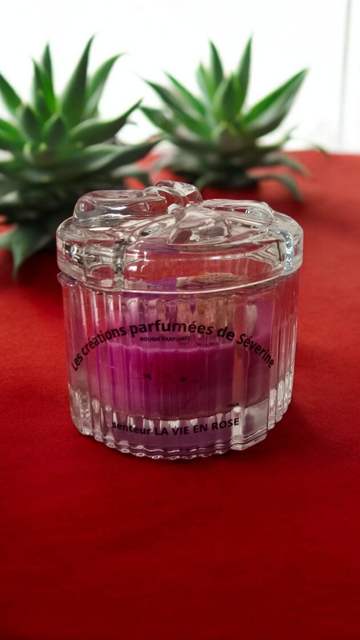 Cette bougie parfumée la vie est belle diffuse une fragrance élégante.