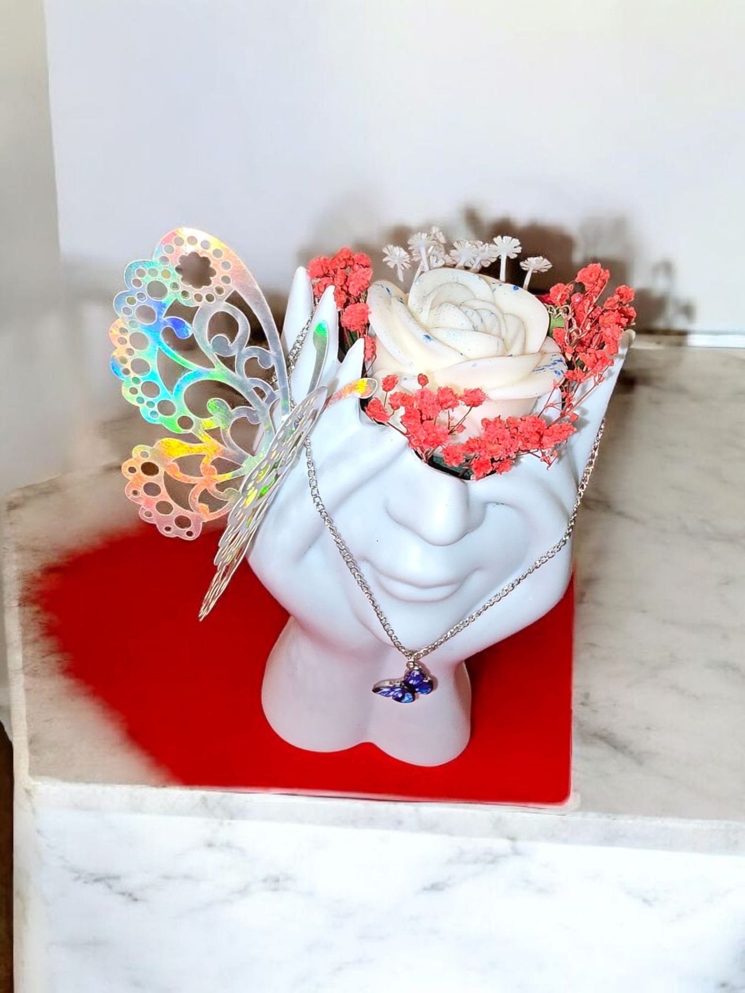Le Bouquet Magnolia Artisanal attire l’œil dès le premier instant. Son design délicat séduit par sa douceur et son originalité. En effet, son contenant en forme de deux mains symbolise l’attention et l’émotion. Ainsi, il devient bien plus qu’un simple objet décoratif.