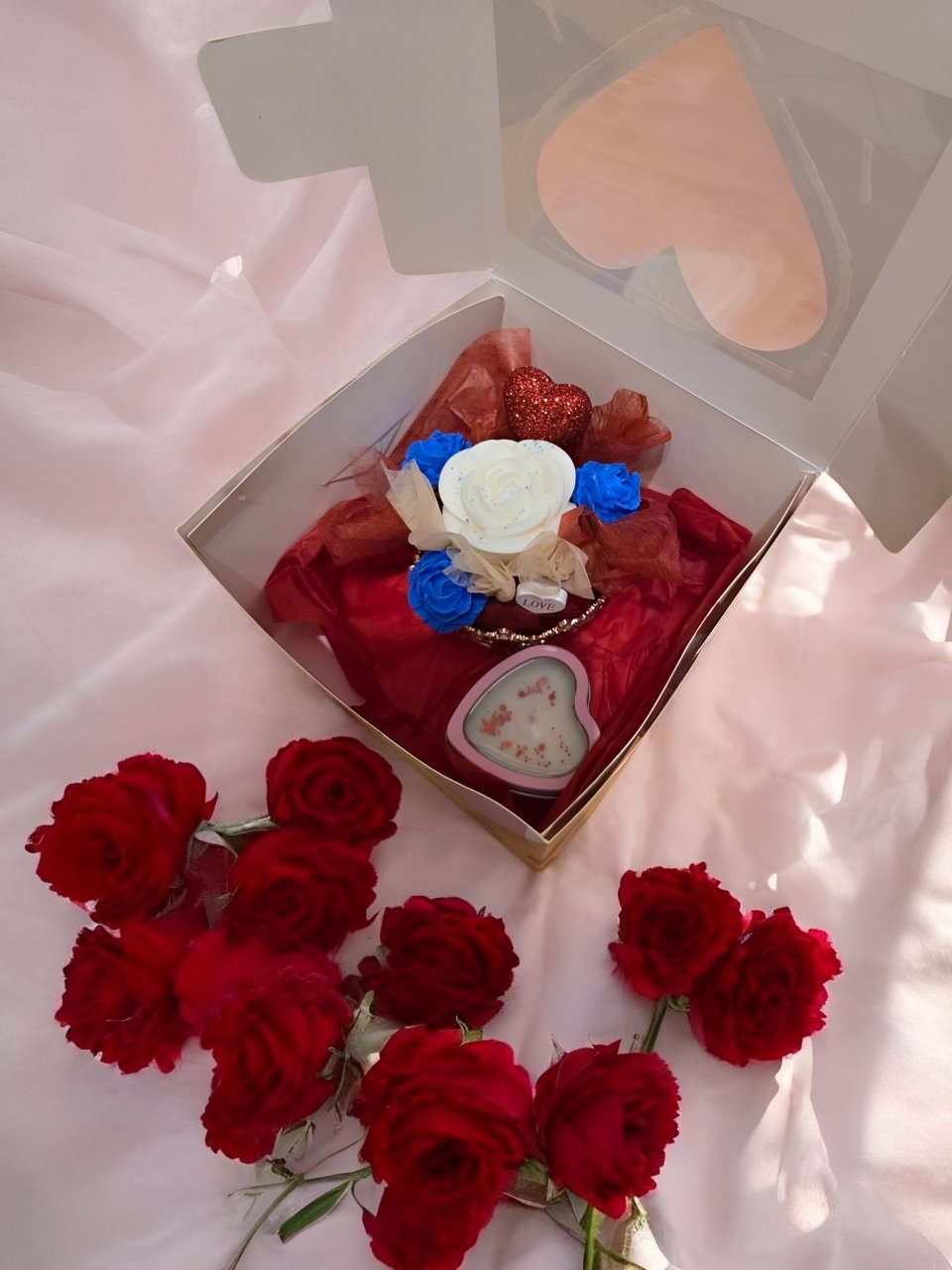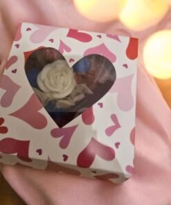 Le coffret contient également une bougie en forme de cœur, symbole universel de l’amour. Grâce à sa senteur barbe à papa, elle diffuse une fragrance douce, sucrée et régressive.